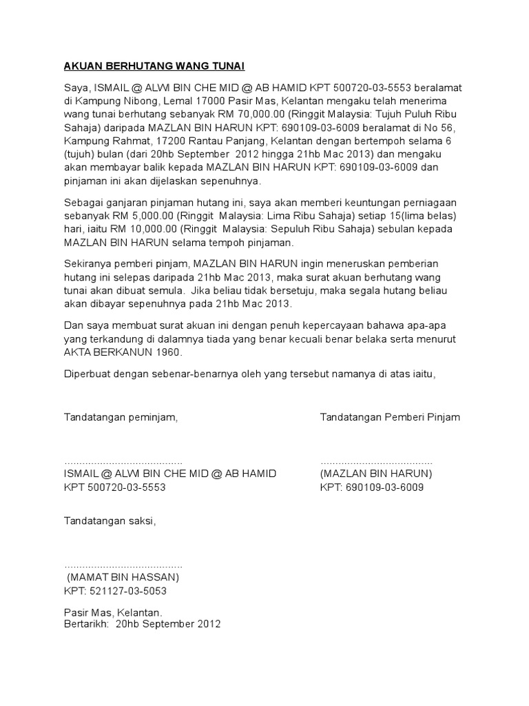 Surat Akuan Meminjam Wang : Bantuan Menyelesaikan Hutang Al Gharimin / Surat akuan meminjam wang biro pengaduan awam, jabatan perdana menteri 2 years ago.
